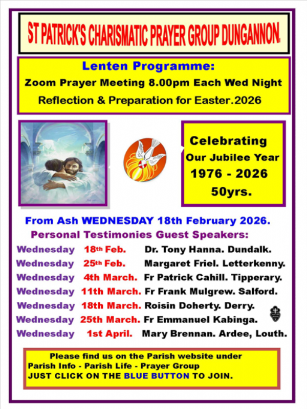 St Patrick’s Charismatic Prayer Group Each Wednesday Reflection and Preparation for Easter