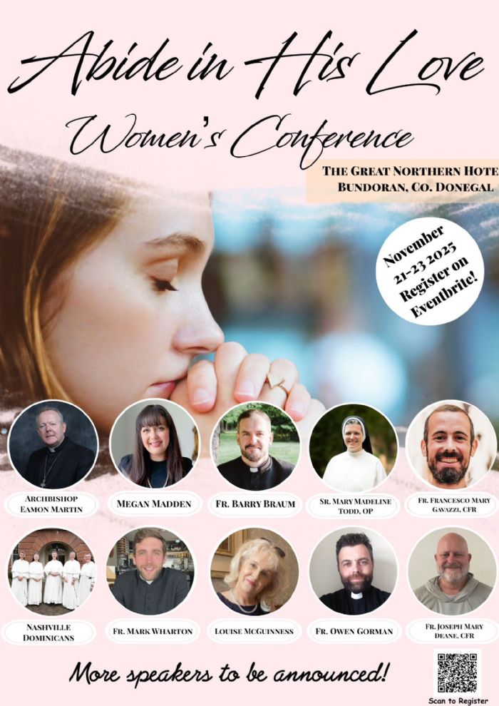 Speakers include Sr. Mary Madeline Todd O.P & Megan Madden (USA), Fr Barry Braum, Fr. Francesco Gavazzi, & Fr Mark Wharton (England), Nashville Dominican Sisters, Louise McGuiness, Fr. Joseph Mary Deane, CFR, and Mass with Archbishop Eamon Martin. All are most welcome. We look forward to welcoming you.