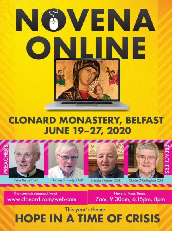 This year's Clonard Novena will take place online due to COVID-19. It will run from Friday, 19th June until Saturday, 27th June.
