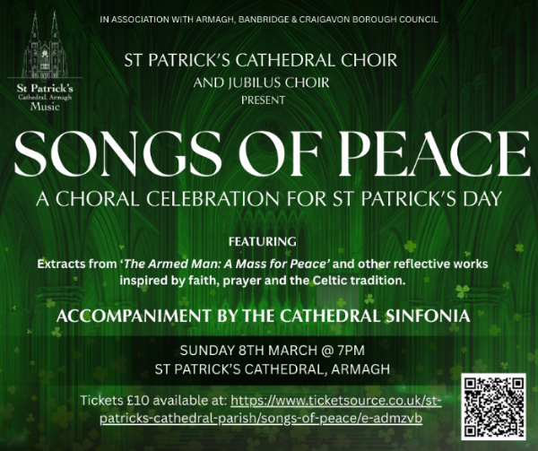 Songs of Peace in St Patrick’s Cathedral on Sunday 8 March at 7pm