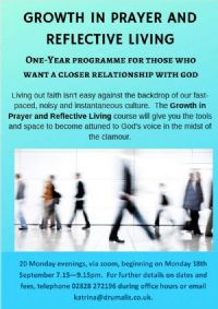 A one-year programme (20 x 2-hour sessions) via Zoom for those who want a closer relationship with God; who struggle with prayer; who want to make choices that are in tune with God’s dream for the world. No expertise in prayer or reflection is required. All are welcome.