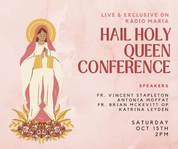 The Hail Holy Queen Conference 2022 is live on Radio Maria Ireland from 2pm on Saturday, 15th October.