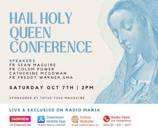 The Hail Holy Queen Conference 2023 is live on Radio Maria Ireland from 2pm on Saturday, 7th October.