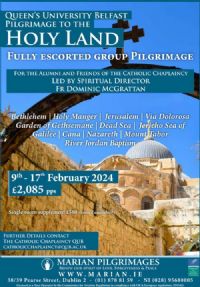 The Catholic Chaplaincy at Queen’s University Belfast will lead a Pilgrimage to the Holy Land for alumni and friends.*
