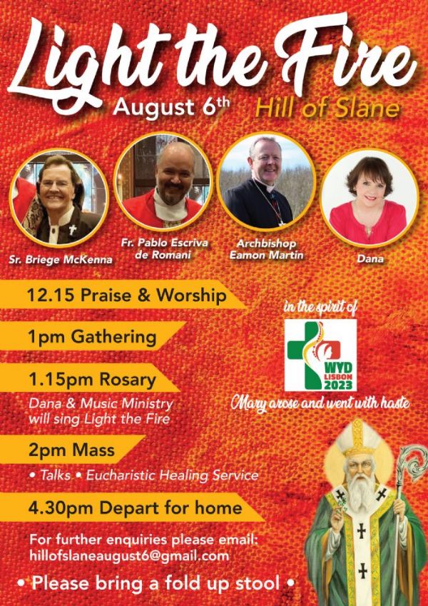 You are invited! Archbishop Eamon Martin will celebrate Mass at Slane on August 6th as part of a Light the Fire Rosary/ Healing Service on World Youth Day.