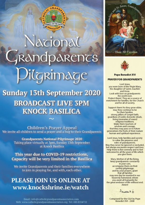 The 2020 National Grandparents Pilgrimage is on Sunday 13th of September at the Shrine of Our Lady of Knock taking place virtually at 3pm at Knock Basilica.