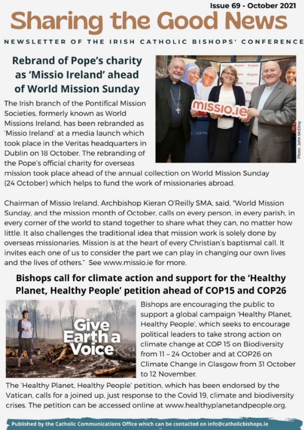 Please see below Issue 69 of Sharing the Good News. It can also be downloaded from the home page of www.catholicbishops.ie.