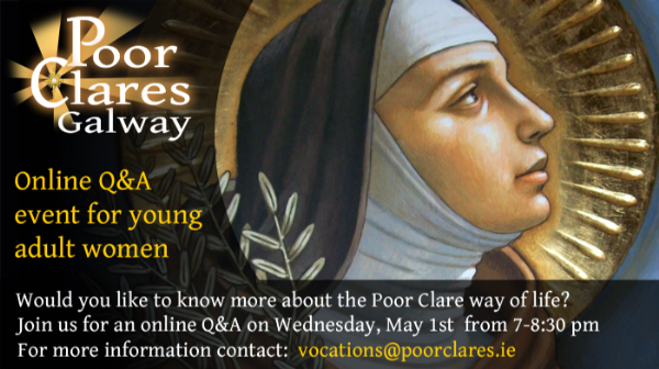 The Poor Clares in Galway are hosting an online Q&A for young women who would like to know more about the Poor Clare way of life.