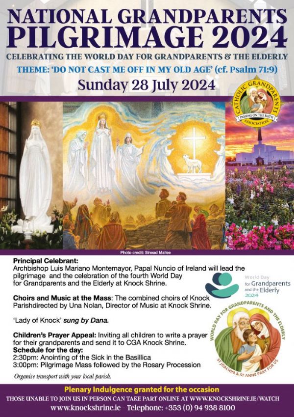 The National Grandparents Pilgrimage 2024 at Knock Shrine on Sunday, 28th July celebrates the World Day for Grandparents and the Elderly.
