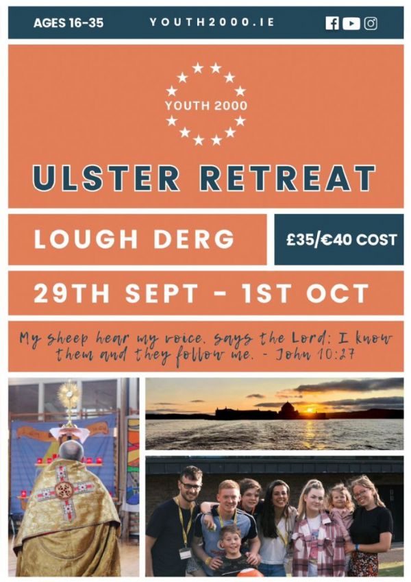 The next Youth 2000 Ulster retreat will be taking place in the beautiful and tranquil surroundings of Lough Derg, Co. Donegal between 29th of September to the 1st of October.