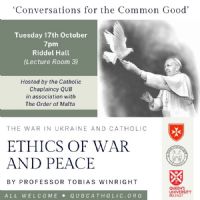 For the next in its series of 'Conversations for the Common Good' , the Catholic Chaplaincy at Queen's University will host eminent theologian and ethicist, Professor Tobias Winright of Maynooth and Oxford, who will address the Catholic understanding of just war and peace in light of the Ukraine War.